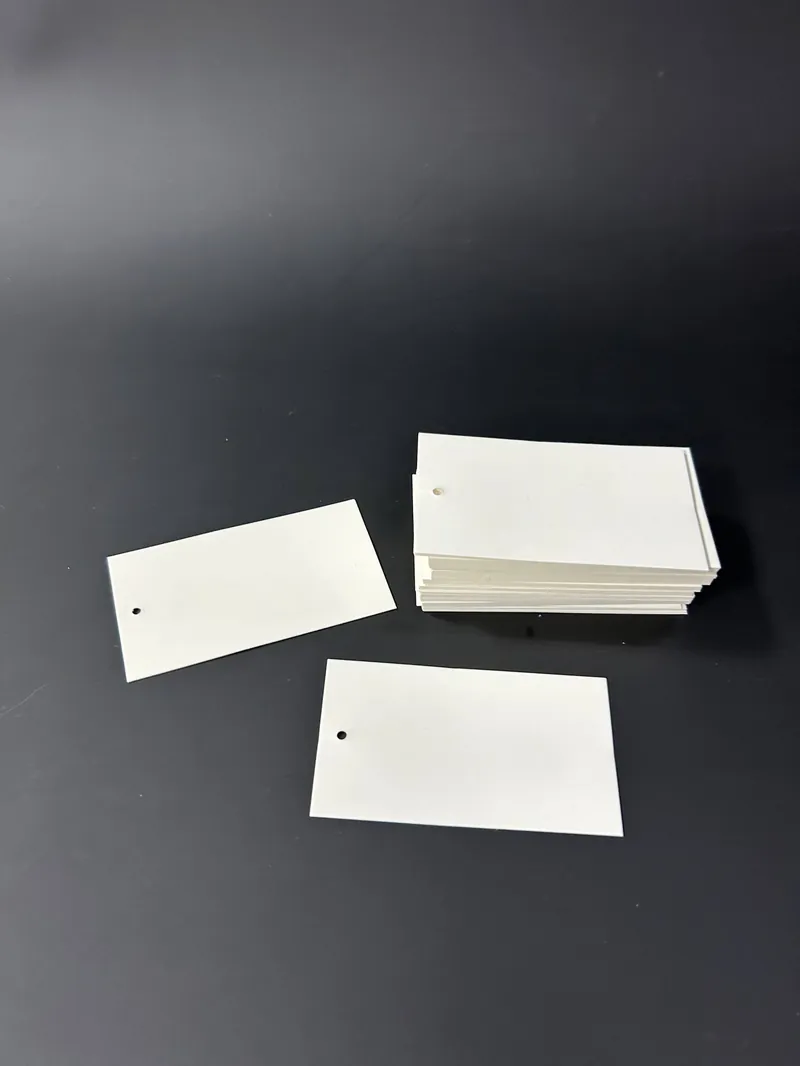 Удобство крепления: Каждая бирка имеет аккуратное отверстие, которое подходит для использования как пластиковых соединителей, так и премиальных веревочных держателей.