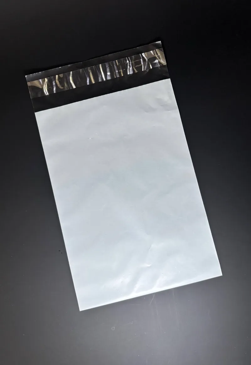 Полная конфиденциальность: Двухцветный состав полиэтилена (белый внешний слой и черный/серый внутренний) делает пакет абсолютно непрозрачным. Содержимое посылки невозможно увидеть даже при ярком направленном свете.